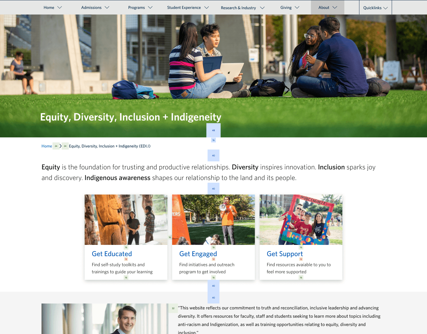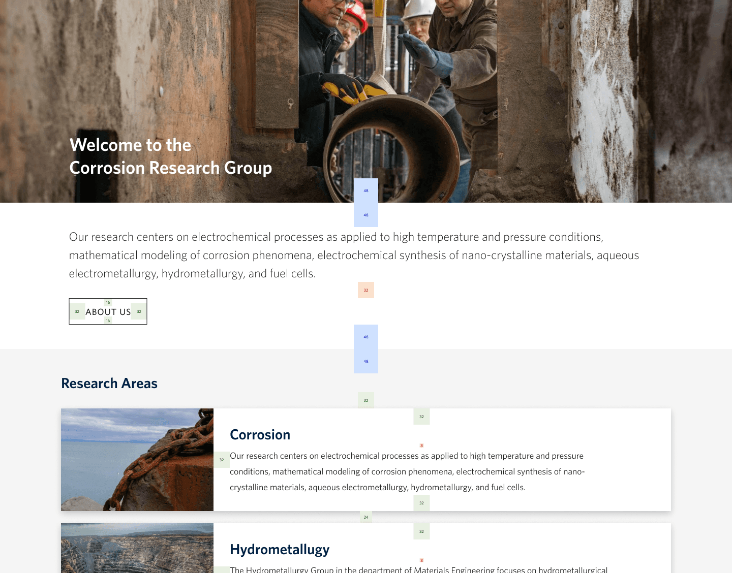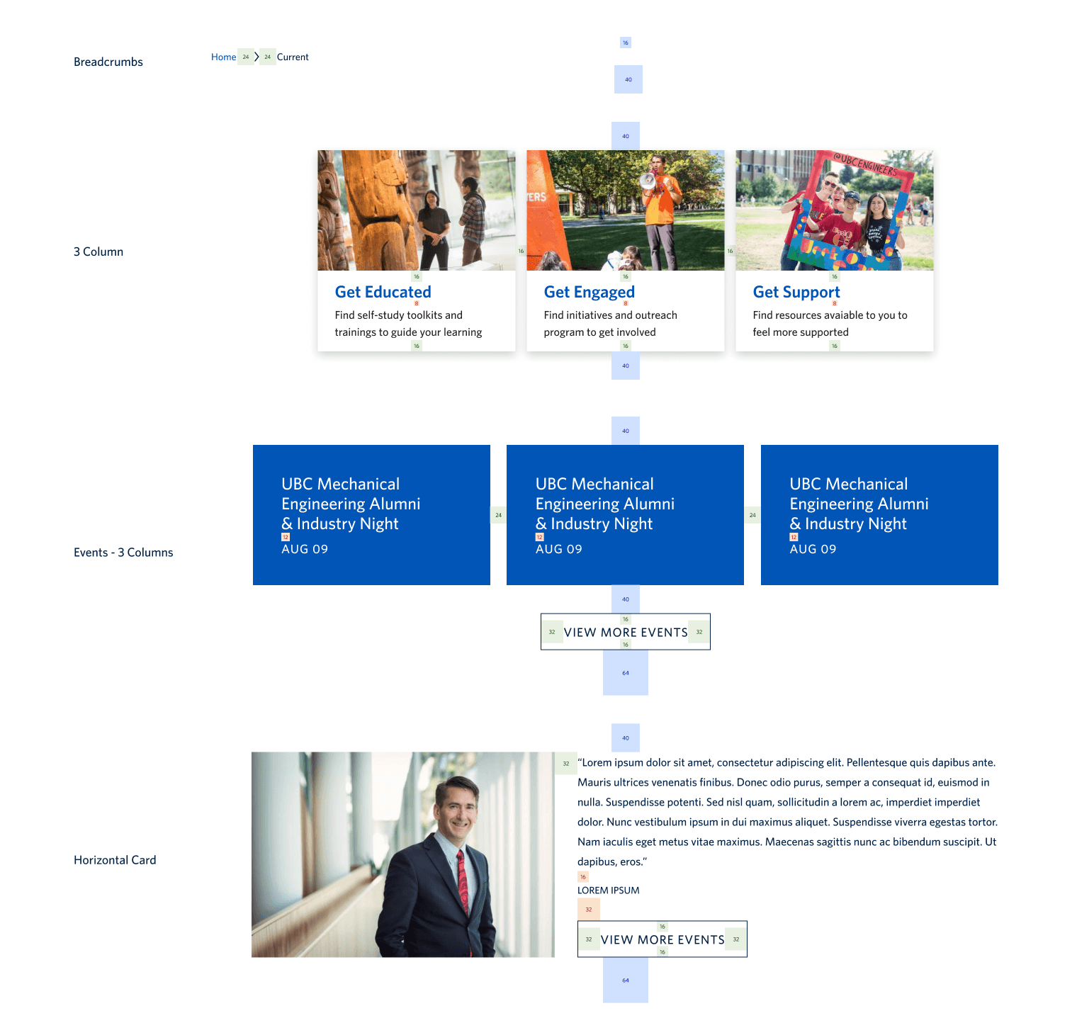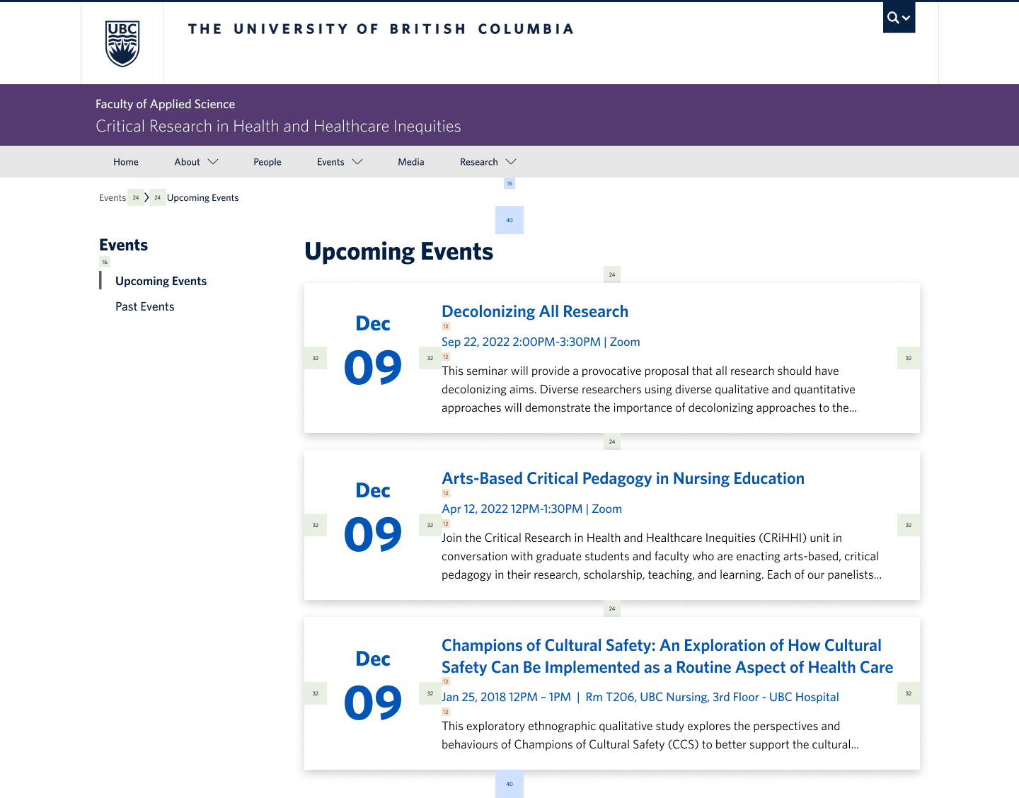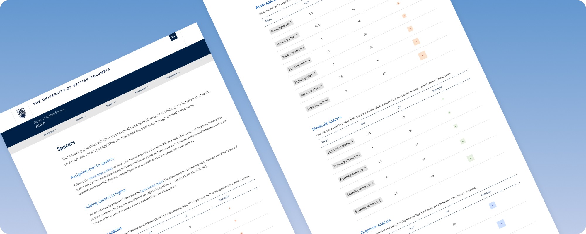 During my time at UBC APSC, I worked on several websites within the faculty's portfolio. The implementation of our new spacing system sped up workflows and improved handoffs, while maintaining consistent spacing across sites and visual cohesiveness.
