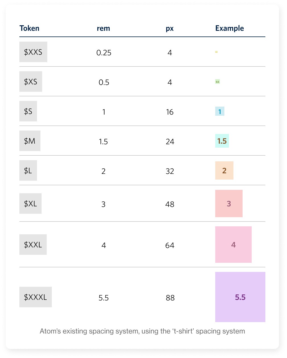 Previously, we used a ‘t-shirt’ spacing system. However, this approach was difficult to scale, especially when new values were needed between existing sizes.