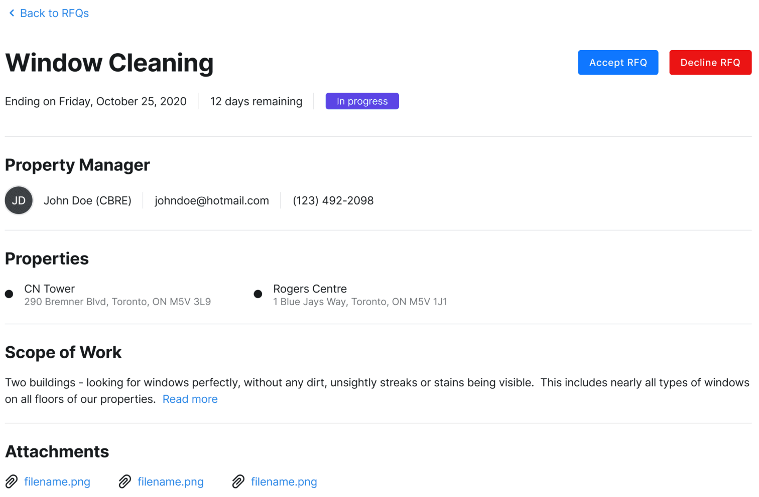 When Vendors receive a quote request, they typically need more detailed property information to provide an accurate service quote.