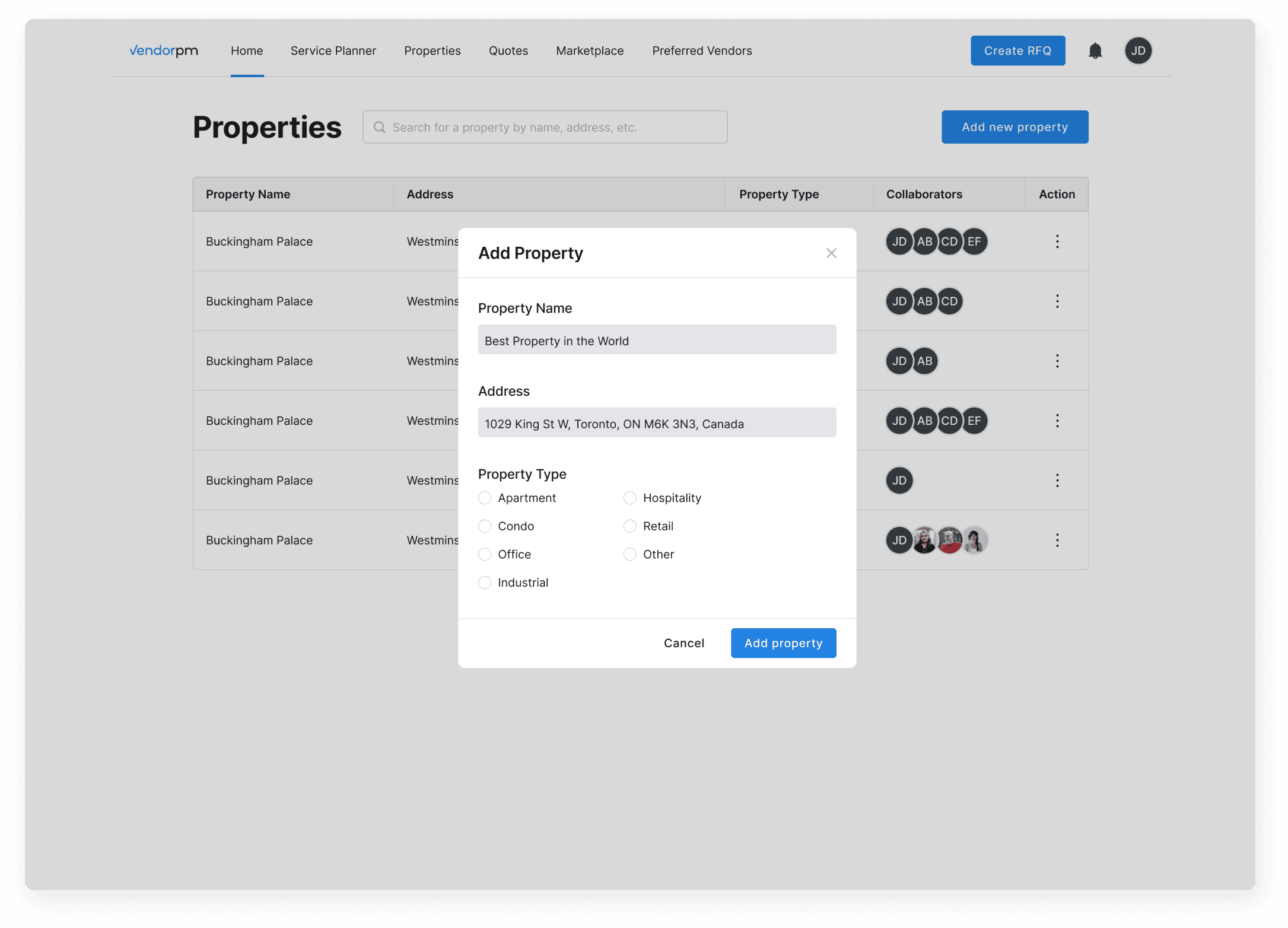 The Properties page plays a pivotal role in streamlining the transactions between Property Managers and Vendors. However, the Customer Success Team noted that this page is primarily used only when Property Managers need to add new properties, but tends to go underused otherwise.