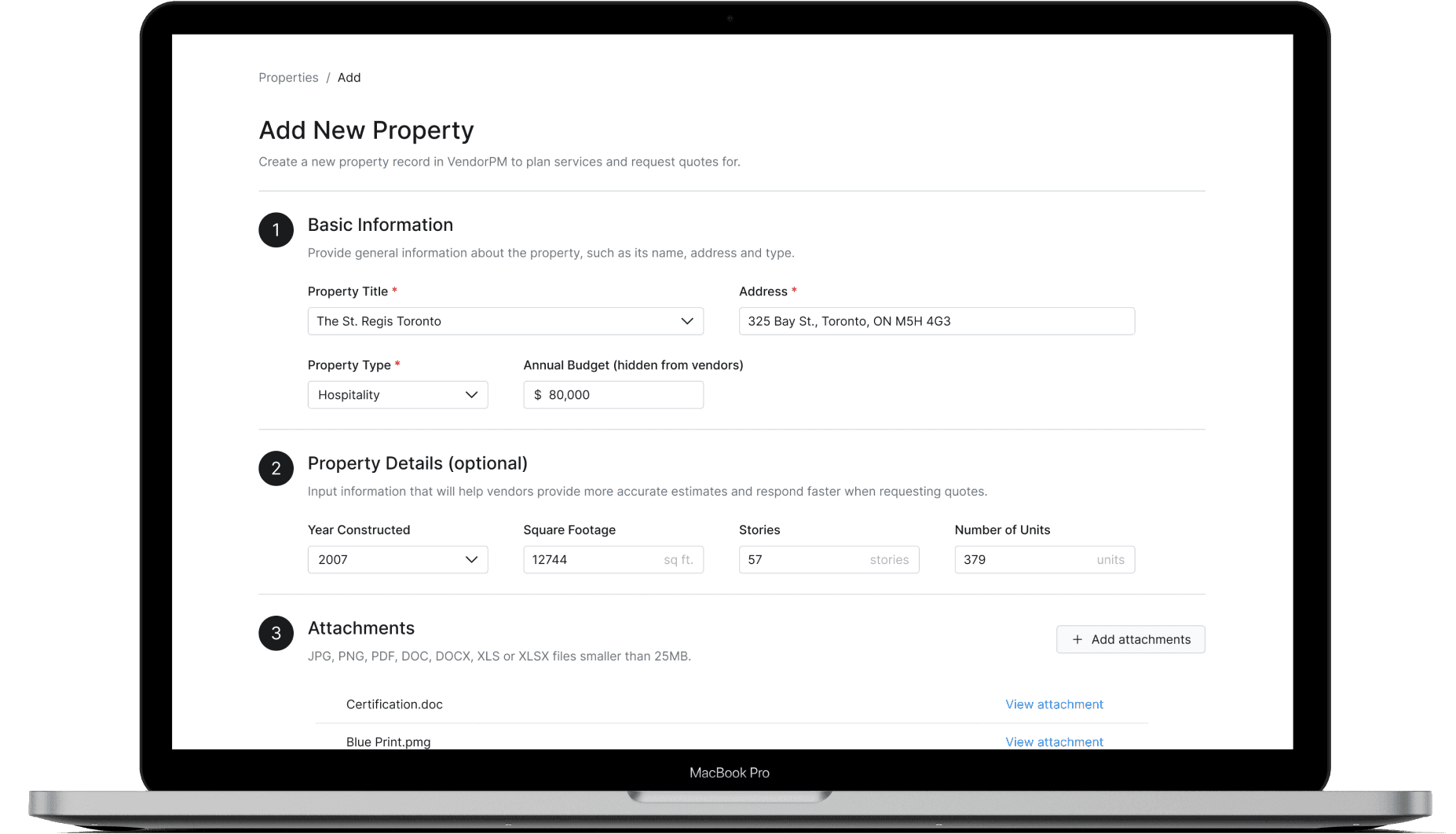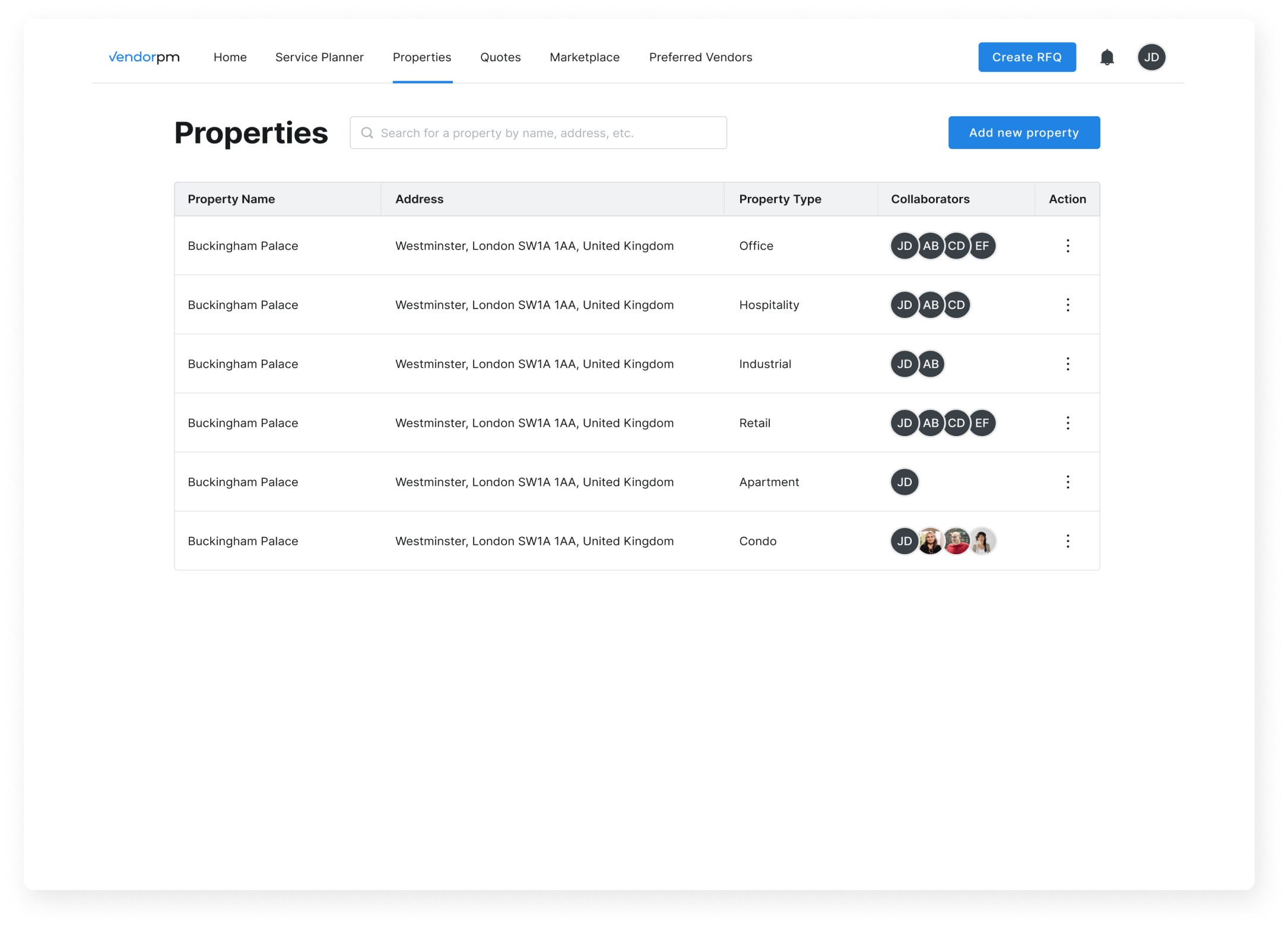 VendorPM’s current Properties page