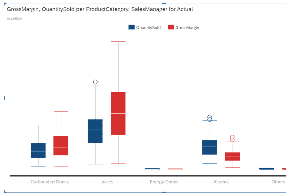 Box Plots from PowerBI, Google Charts CandleStick Visualization, SAP Analytical Cloud, and Tableau, respectively.