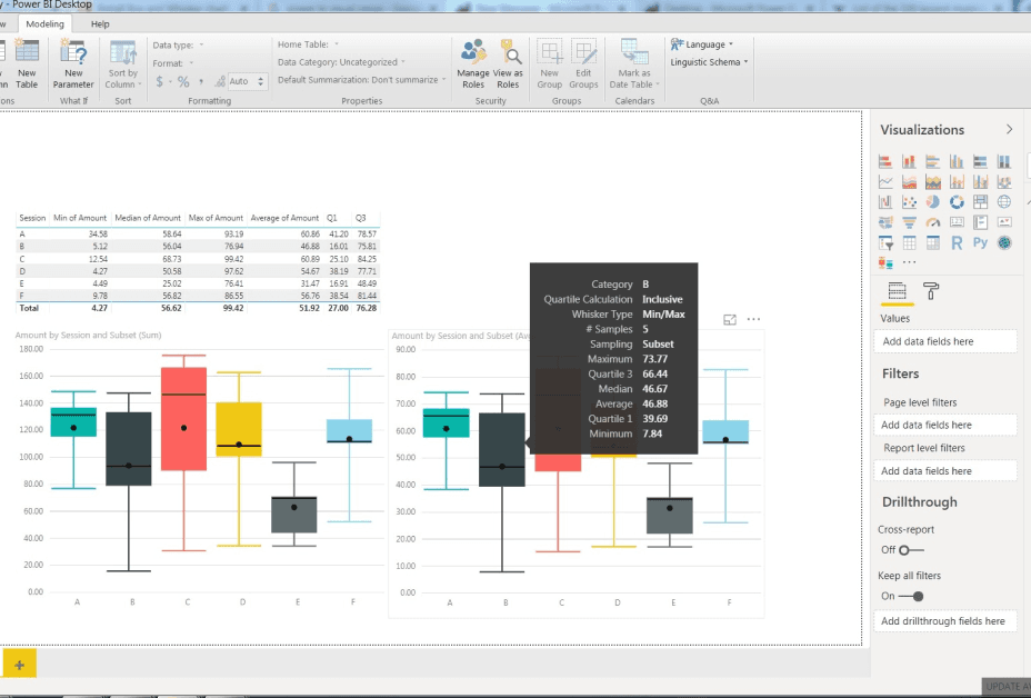 Starting from scratch, our goal was to determine the most effective way to present the Distribution visual. We explored various box plot visualizations, colour schemes, and display formats to find the optimal approach.
